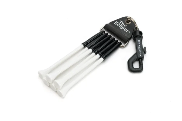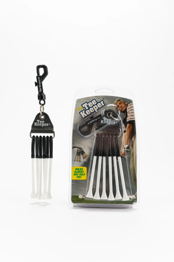 The TeeKeeper(R) was one of the earliest creations and patents. A simple gripping tube can handle the tip of almost any golf tee. 6 tubes hanging side by side create the look of the TeeKeeper(R). Attached to the golf bag, the golf tees hang almost ornamentals from the side of the bag. The TeeKeeper(R) has been sold throughout the USA and overseas and is currently available in both black and white. While newer model golf tee holders have grown in the market, the TeeKeeper(R) is still the favorite for many.