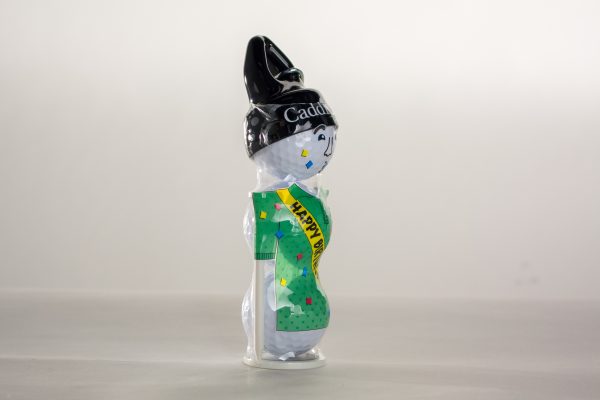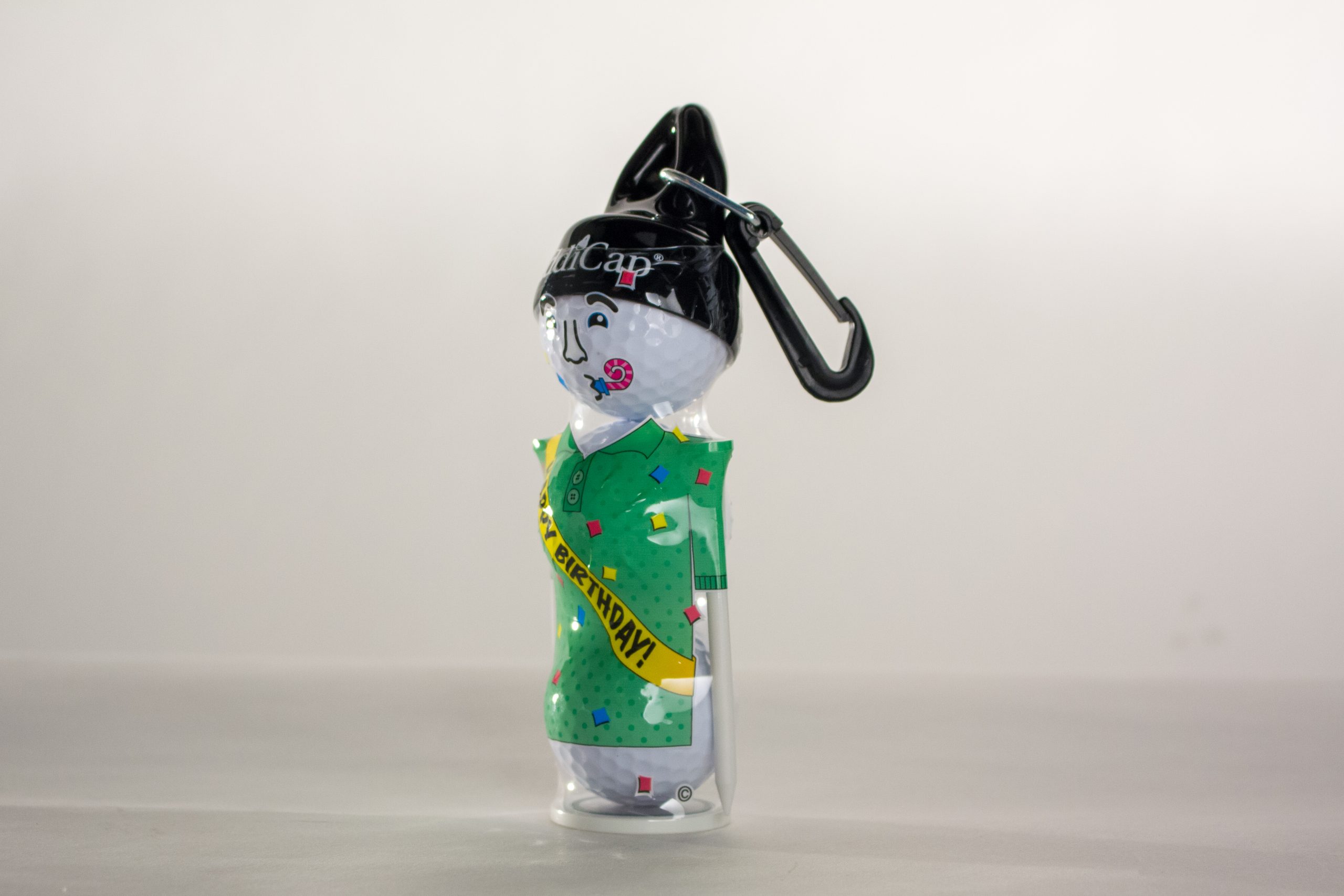 This Patented product has been popular for years. Many of these characters are a total combination of golf products. The base is a poker size ball mark. The arms are two 3 1/4” golf tees. The interior, of course, are playable golf balls, and the cap is a golf ball holder called the CaddiCap(R). Some characters such as the “tournament characters” will not have the CaddiCap(R) hat, but are still in the Golf Character family. We hope to introduce more characters in the years ahead!