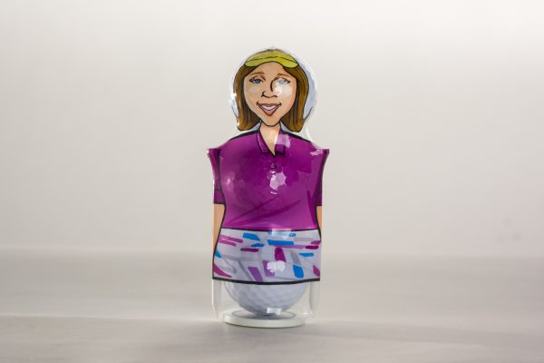 This Patented product has been popular for years. Many of these characters are a total combination of golf products. The base is a poker size ball mark. The arms are two 3 1/4” golf tees. The interior, of course, are playable golf balls, and the cap is a golf ball holder called the CaddiCap(R). Some characters such as the “tournament characters” will not have the CaddiCap(R) hat, but are still in the Golf Character family. We hope to introduce more characters in the years ahead!